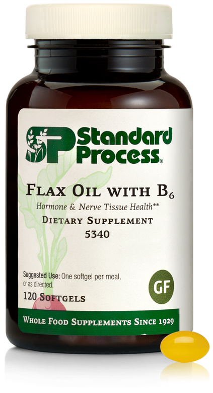 Each Serving Size (1 Softgel) contains: Calories 5, Vitamin B6 2 mg, Flaxseed Oil 630 mg. Other Ingredients: Gelatin, water, glycerine, beeswax, and pyridoxine hydrochloride.